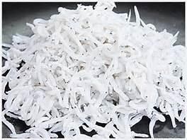 まずは生しらすを流水でよく洗い、灰汁などを取り除きます。 洗浄した生しらすを、濃度約2パーセントの塩水で2分から3分ほど茹でます。 茹であがると透明だった魚体も白くなります。